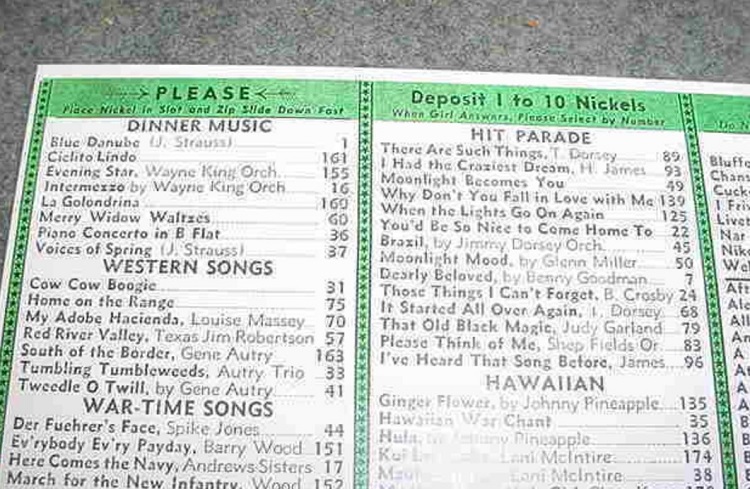 Chaque chanson recevait un numéro, qui était affiché