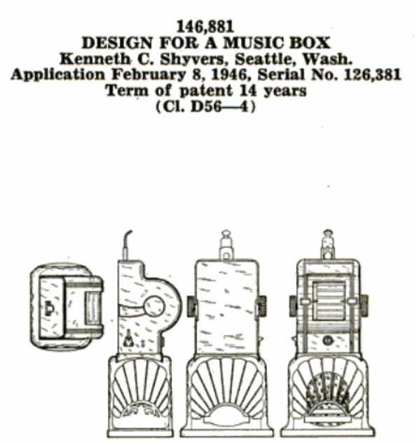 Brevet 146,881 de 1947 de Shyvers pour sa conception