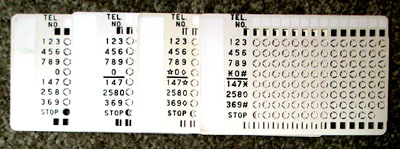Cartes pour composeurs Touch Tone rotatifs et standards