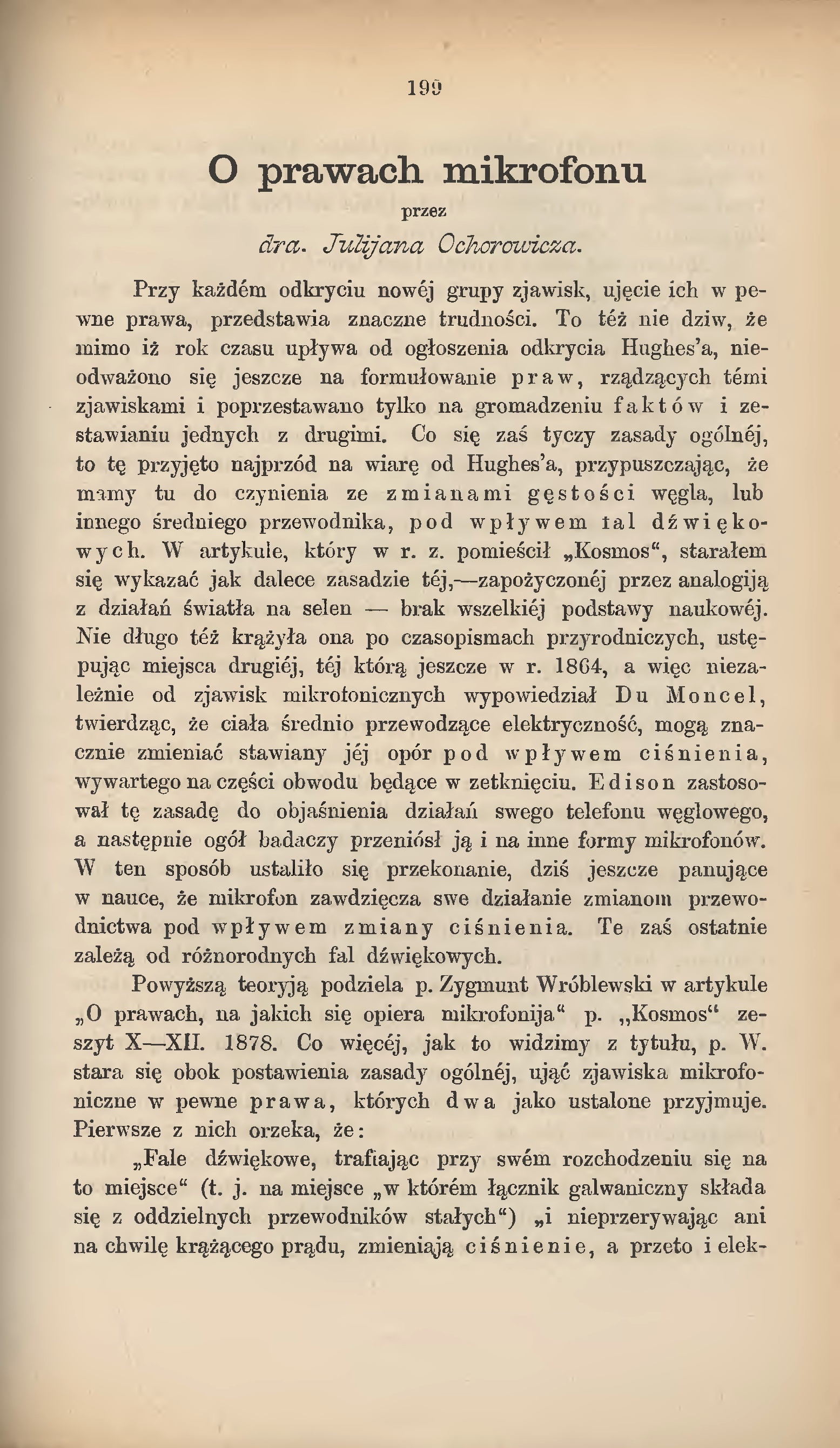 comme le scientifique "Julian Ochocki". Ochorowicz, après