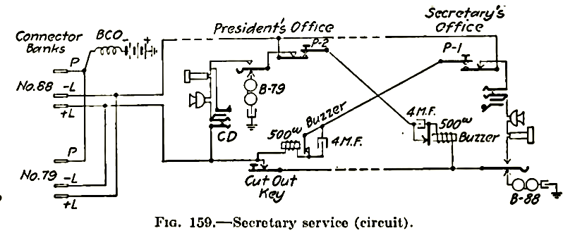touches, et divers circuits communs, auxiliaires et d'alarme.