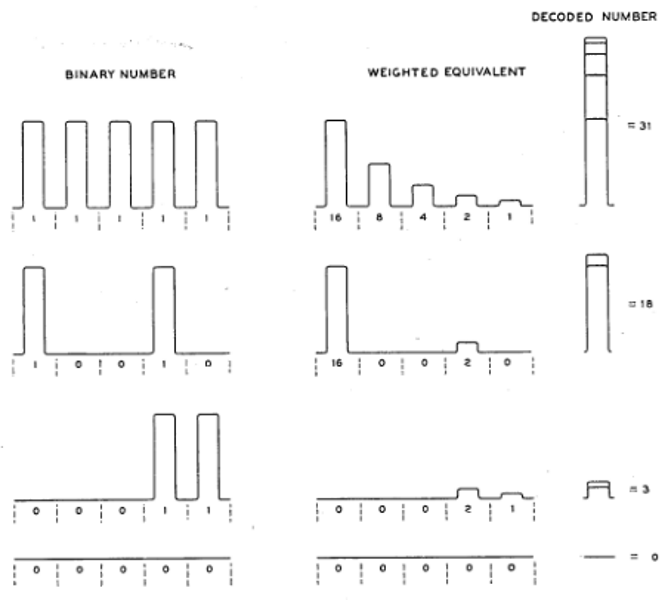 groupe de codes d'impulsions ON-OFF. 2 n (2 puissance n) valeurs d'amplitude