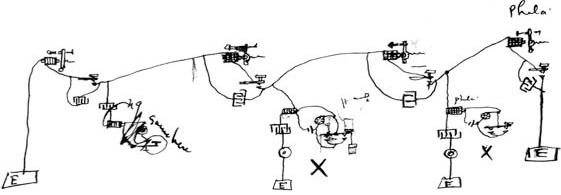 Le dessin représente un schéma partiel d'un bureau phonoplex.