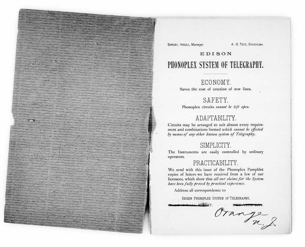 1886. La majeure partie de la correspondance est de Samuel Insull. Il