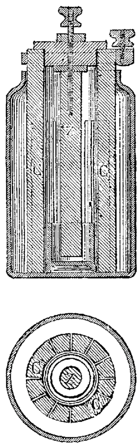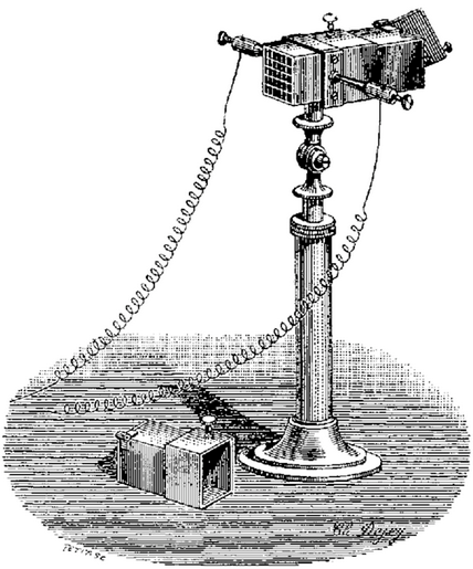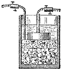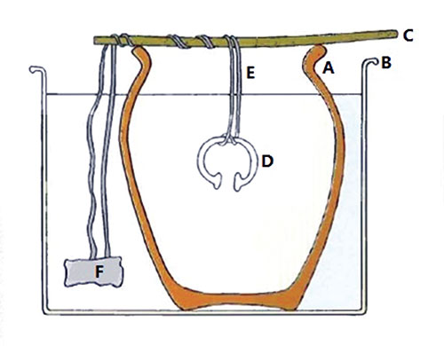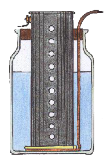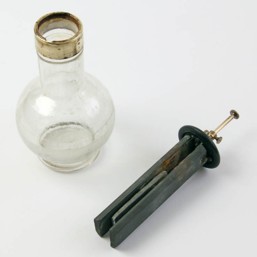 un fil de laiton dont le bout était plongé dans un vase