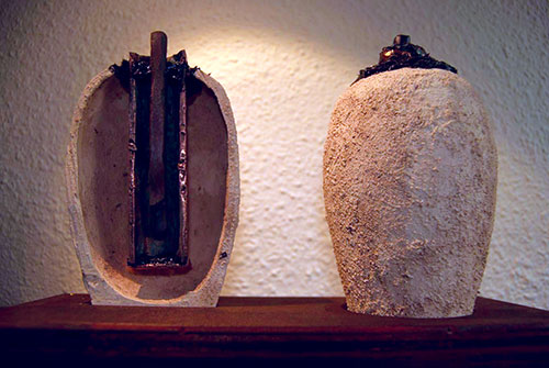 des feuilles en étain chiffonnées contenues dans la bouteille.
