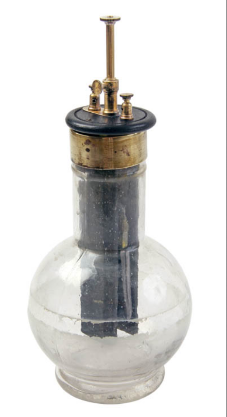 La bouteille de Leyde est un condensateur formé de deux conducteurs