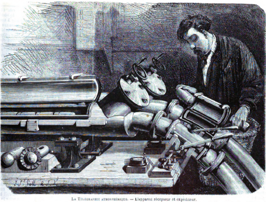 A droite appareil pneumatique postal Fortin-Hermann centenaire encore
