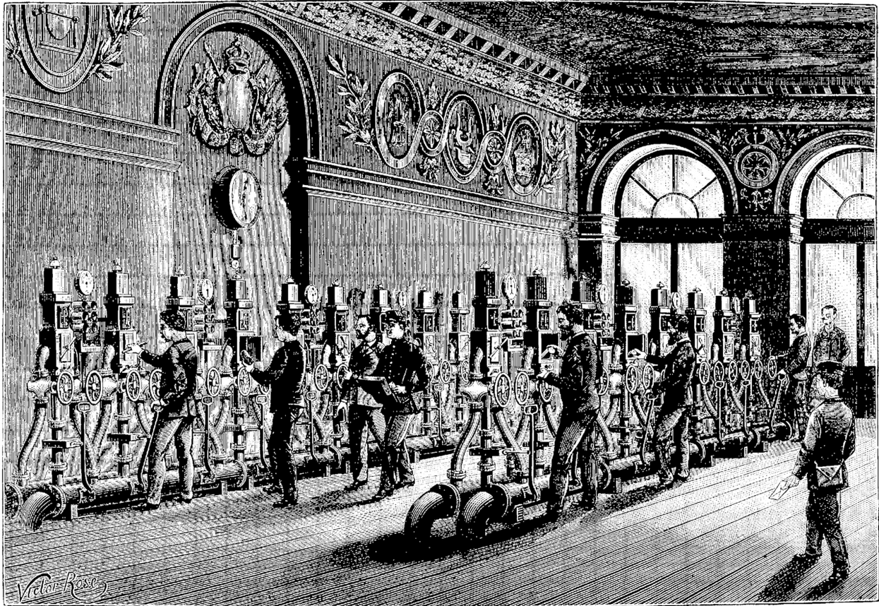 force motrice aux curseurs circulant dans les tubes de la poste pneumatique