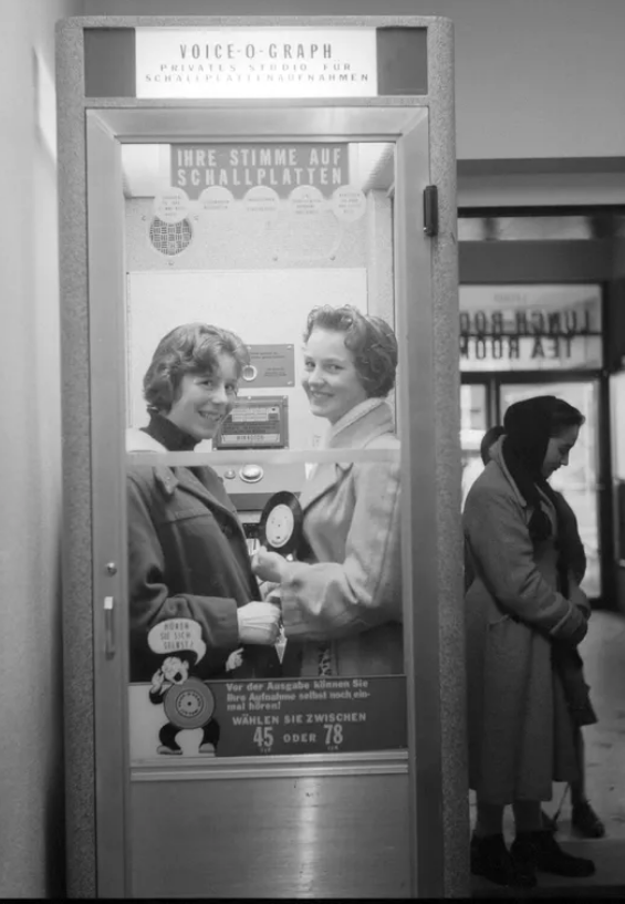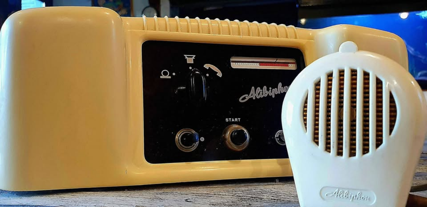 son Voice-O-Graph, une grande cabine en bois semblable à nos