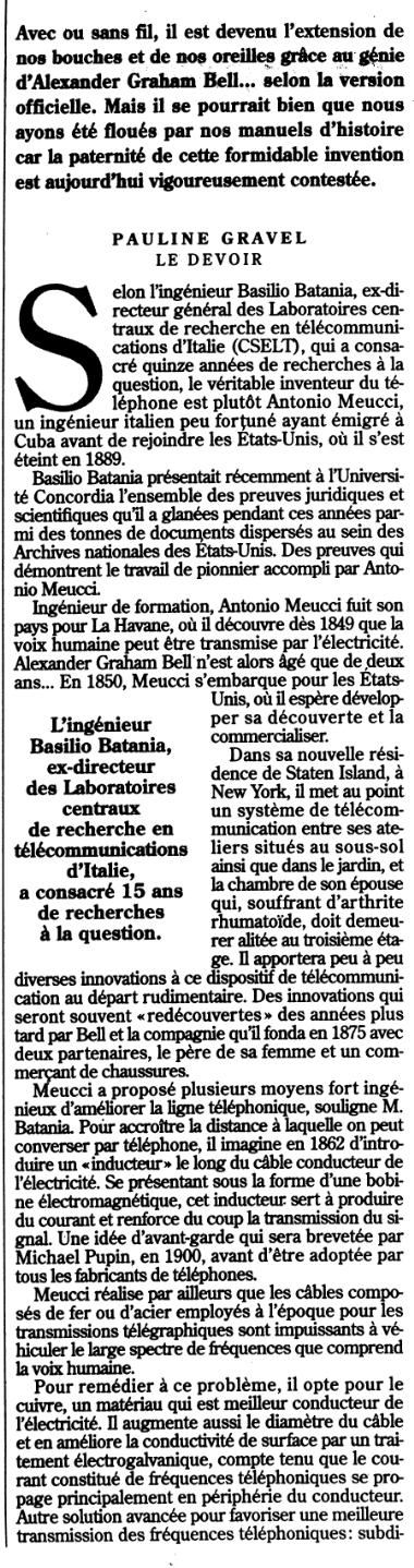 » Antonio Meucci attend d'être reconnu comme l'inventeur d'un