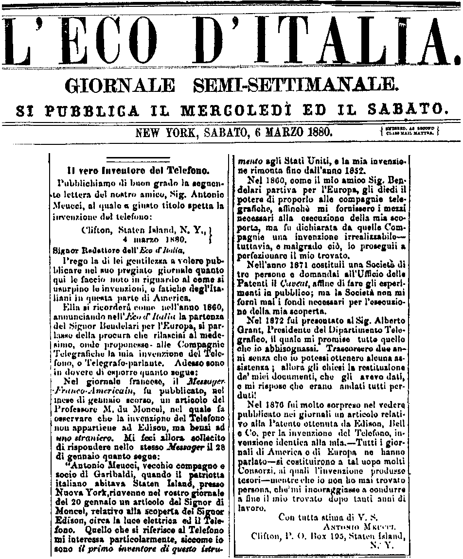 de Antonio Meucci est encore peu connue, mais il s'agit d'un des épisodes