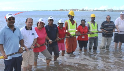 pour symboliquement tirez le câble qui reliera les Seychelles au