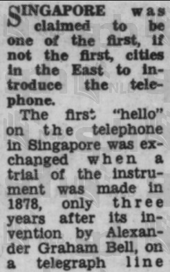 par Alexander Graham Bell, Singapour disposait d'une ligne téléphonique