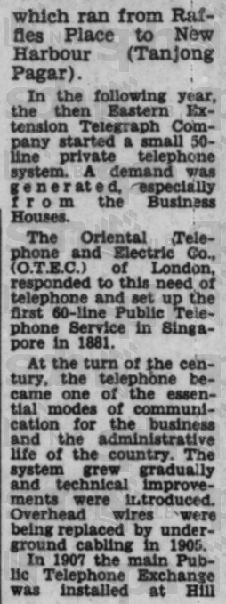 Straits Times, 1 April 1979 on trouve trace du passé téléphonique