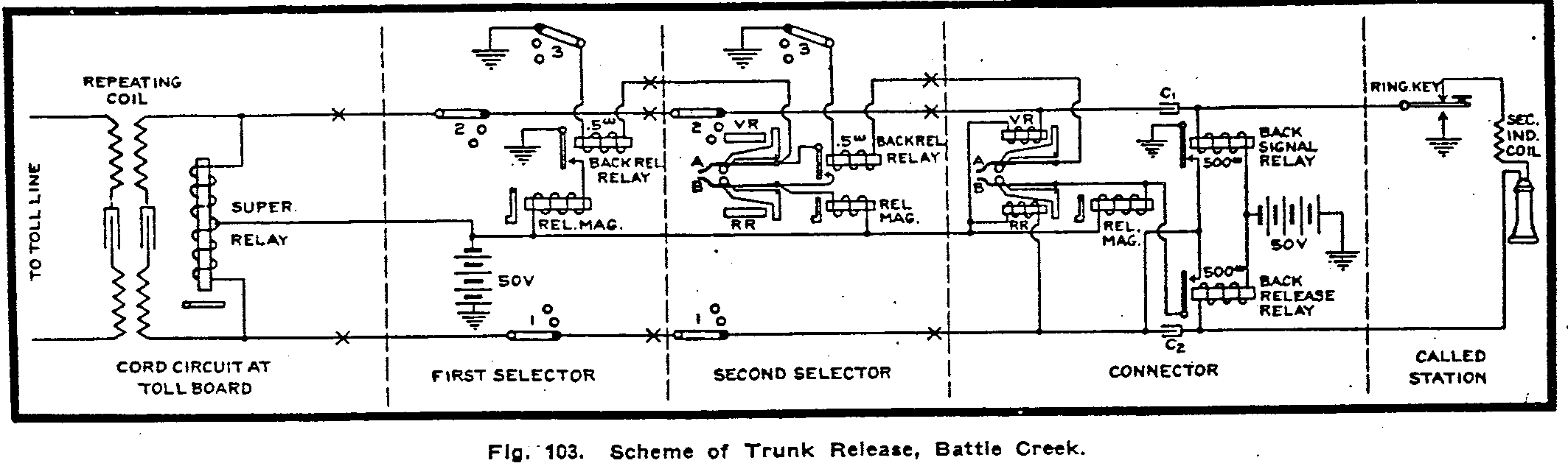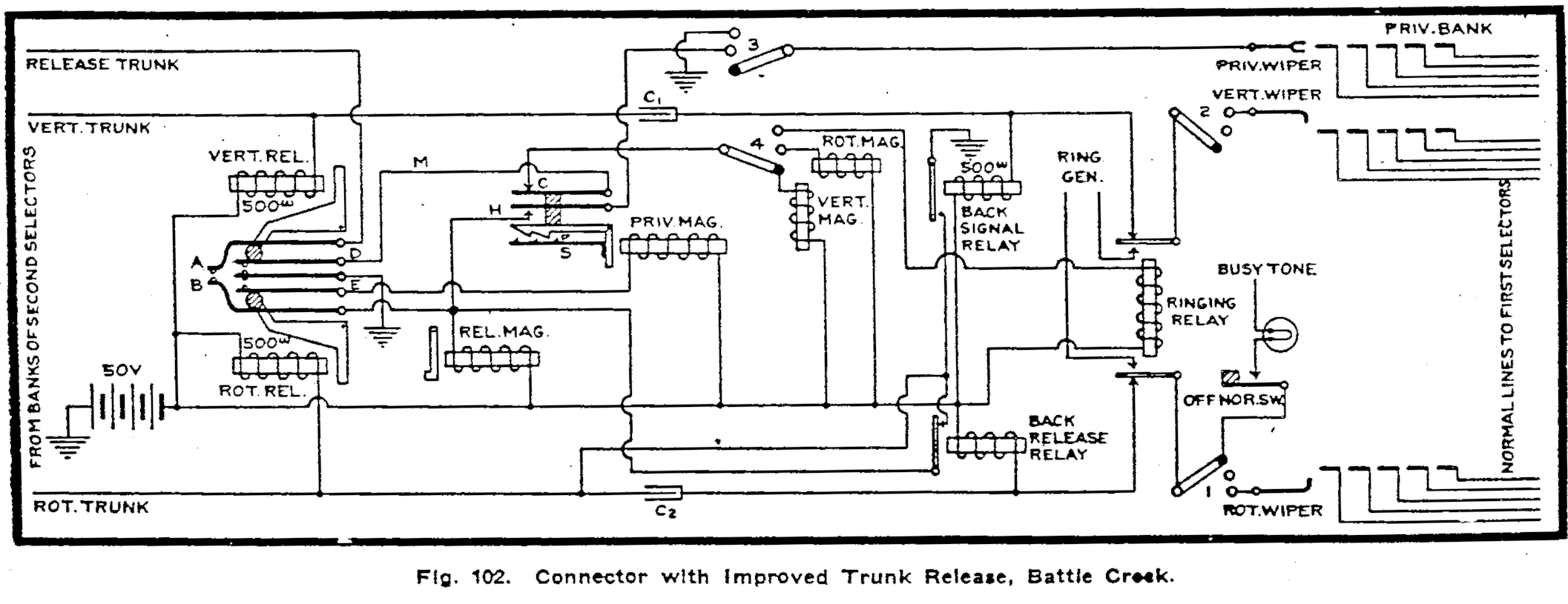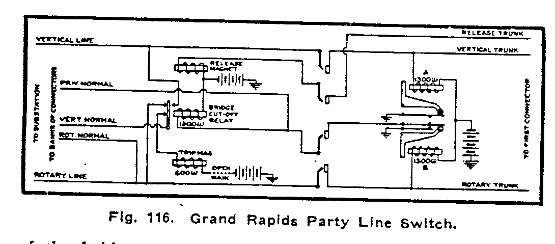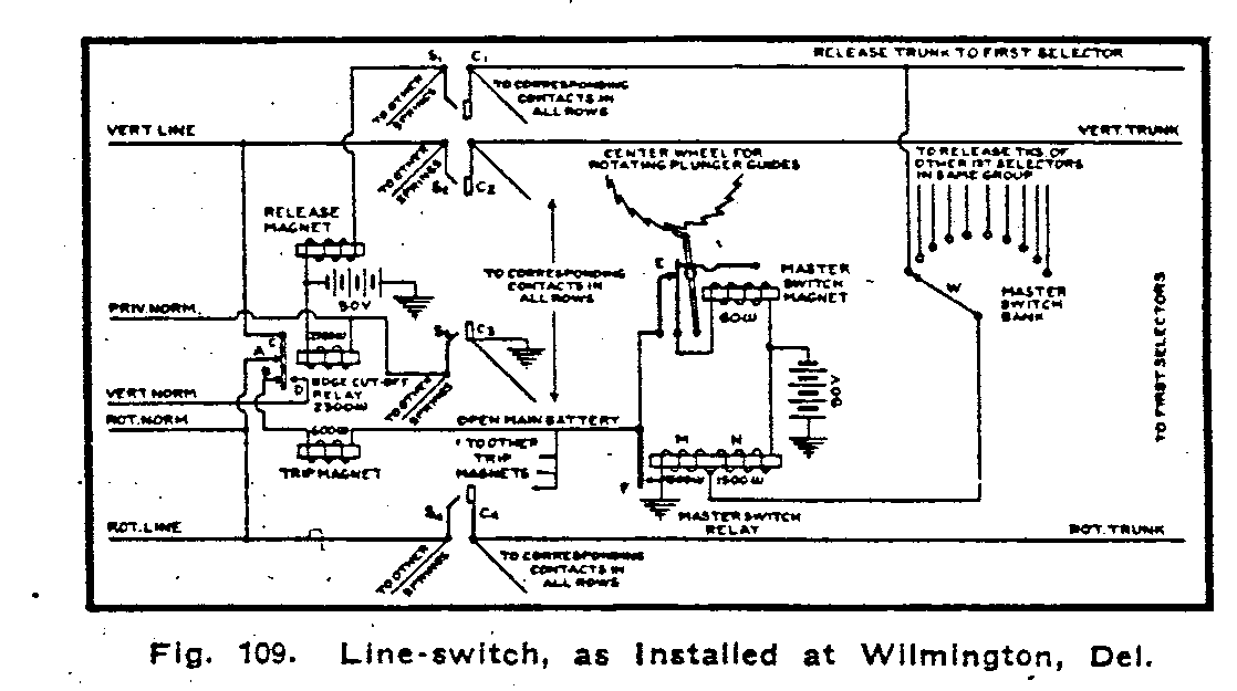 à la conversation. On observera que les relais verticaux, rotatifs,