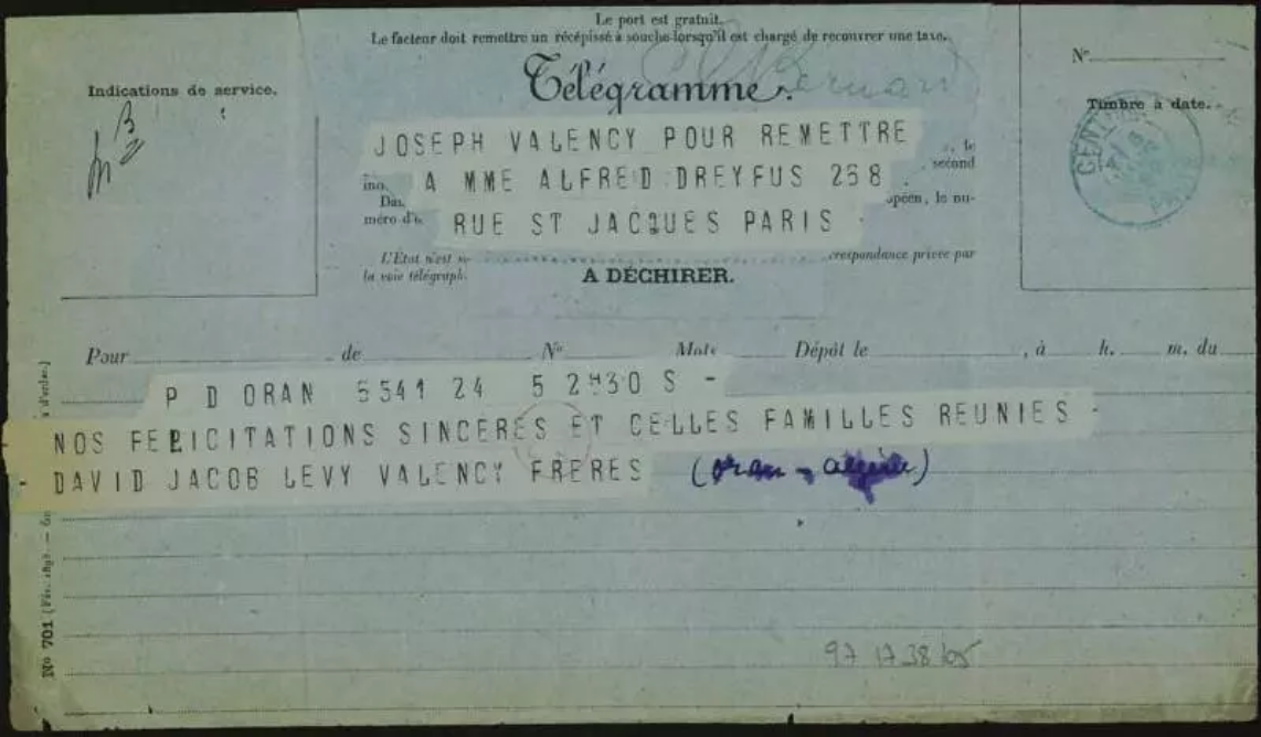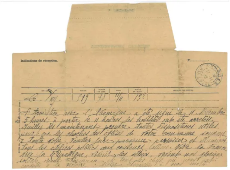 La photo démontre un télégramme qui annonçait