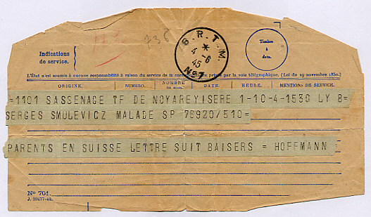 collée sur un formulaire spécial : le télégramme