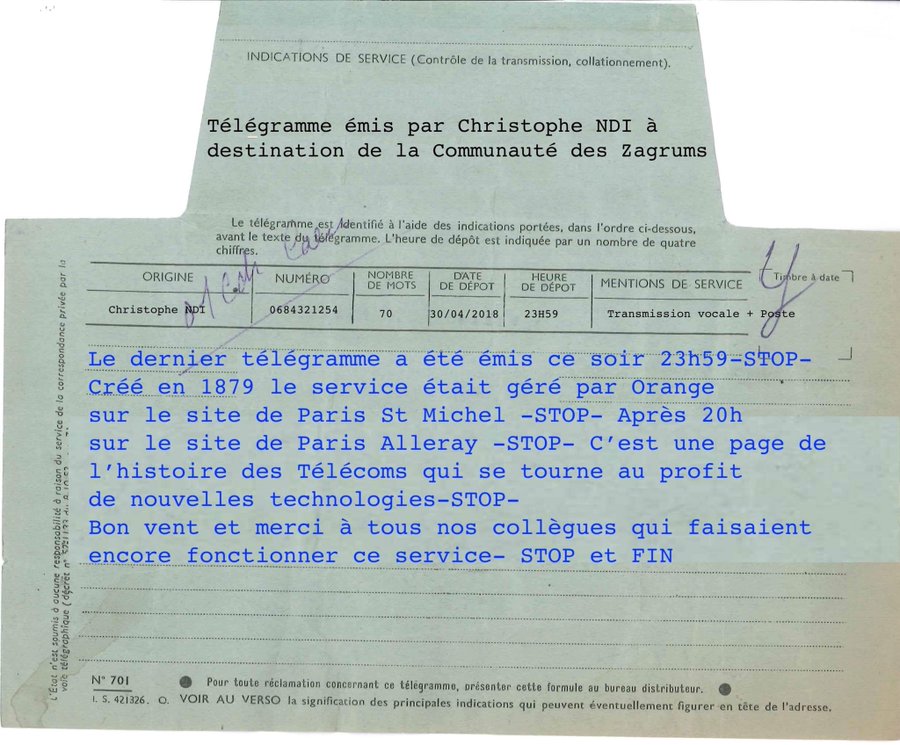 dernier télégramme émis en France