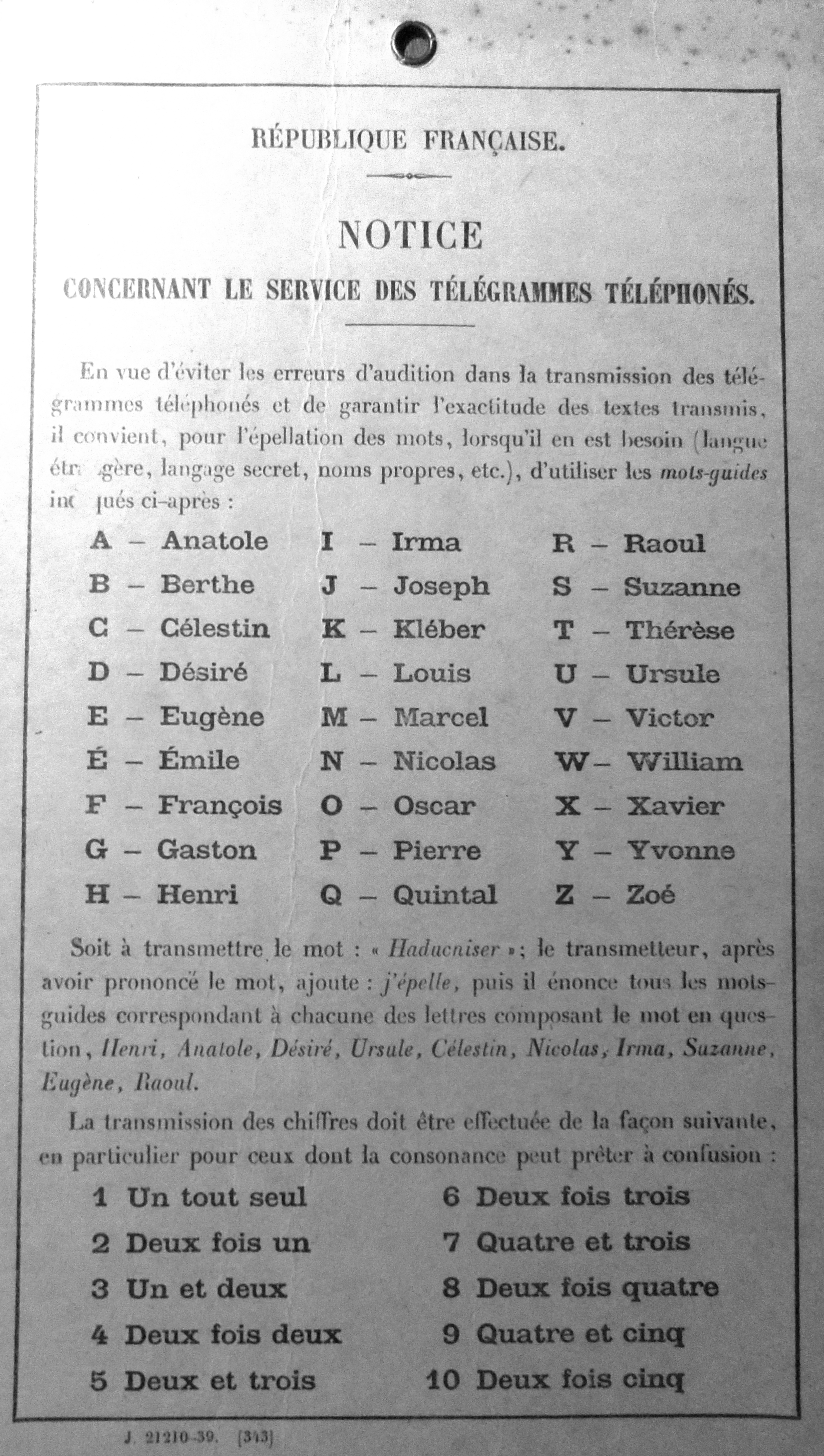 plié, le service assurant la transmission du message par téléphone