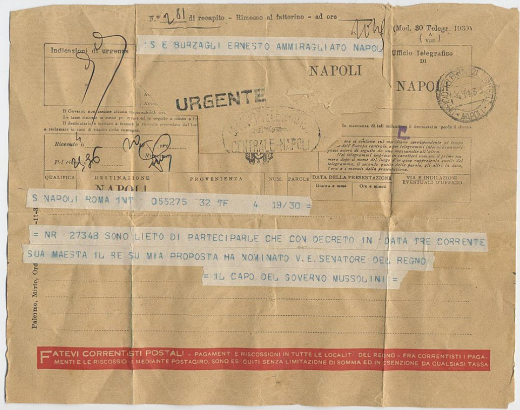 Télégramme italien de 1933 : un message de Benito Mussolini