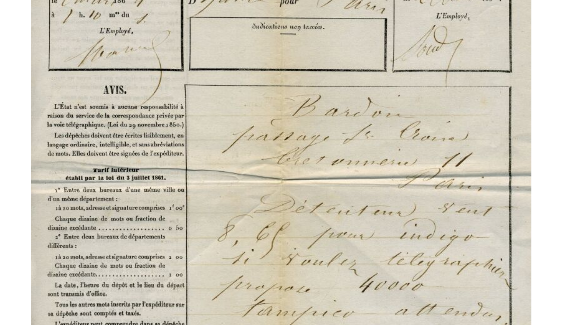 En France le télégramme télégraphique