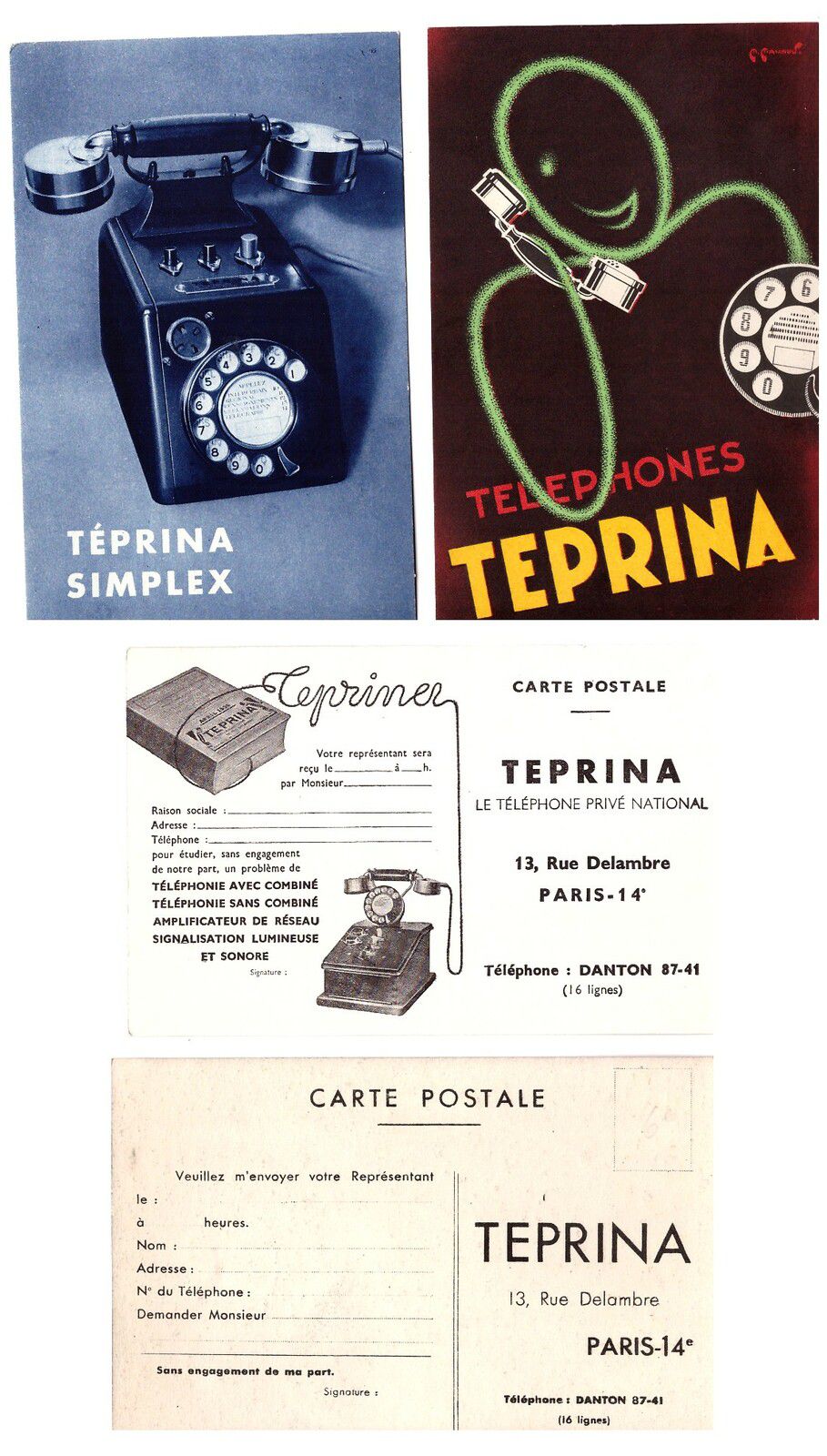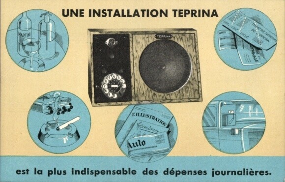 Teprina était une société privée, filiale française de la société allemande Fuld (Harry Fuld), qui produisait et développait des équipements Fuld (mais possédait également ses propres modèles), mais pas pour les PTT. De nombreuses grandes entreprises ont fait cela avant la création du marché commun européen. Le téléphone TEPRINA (Téléphone