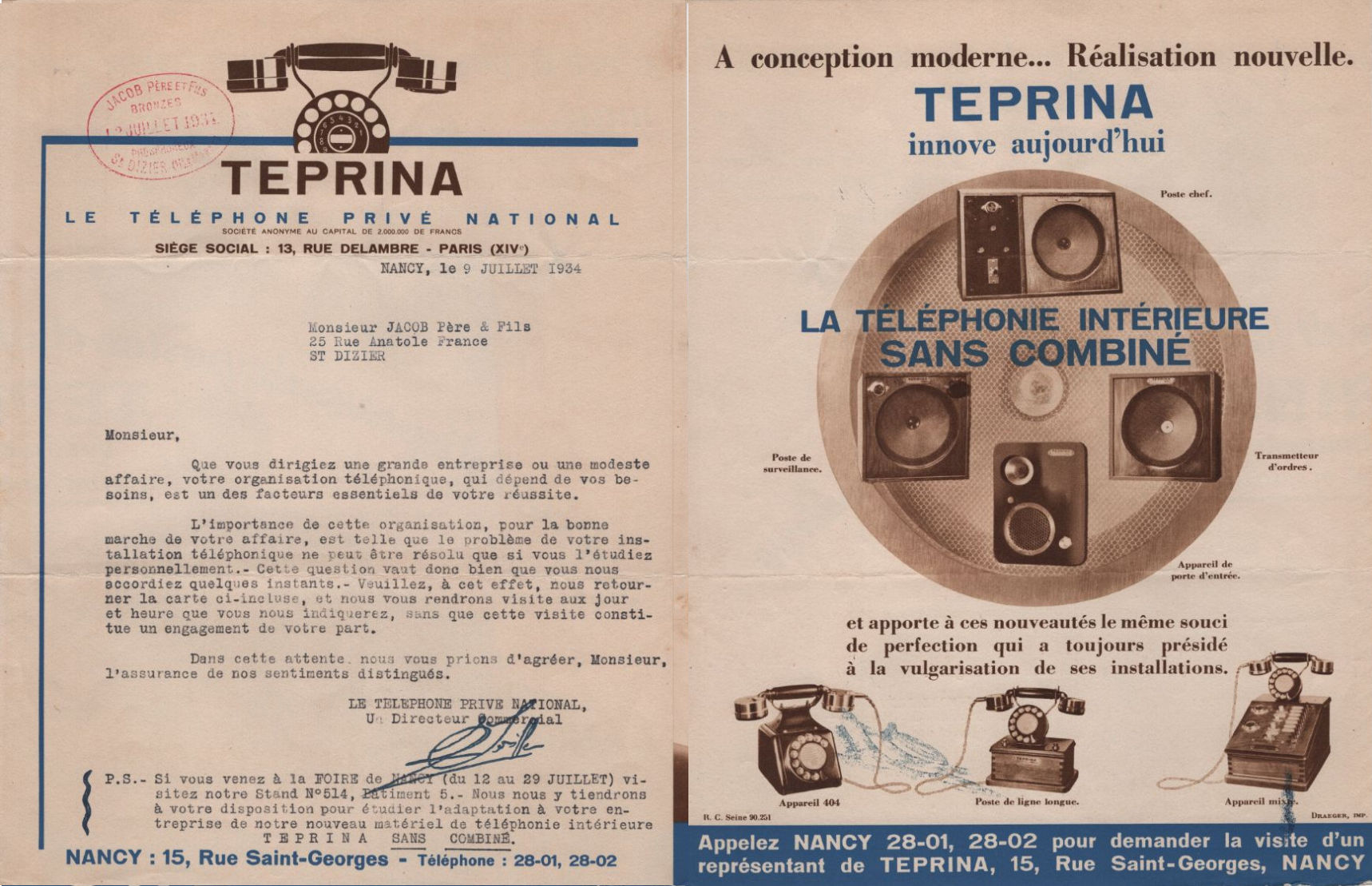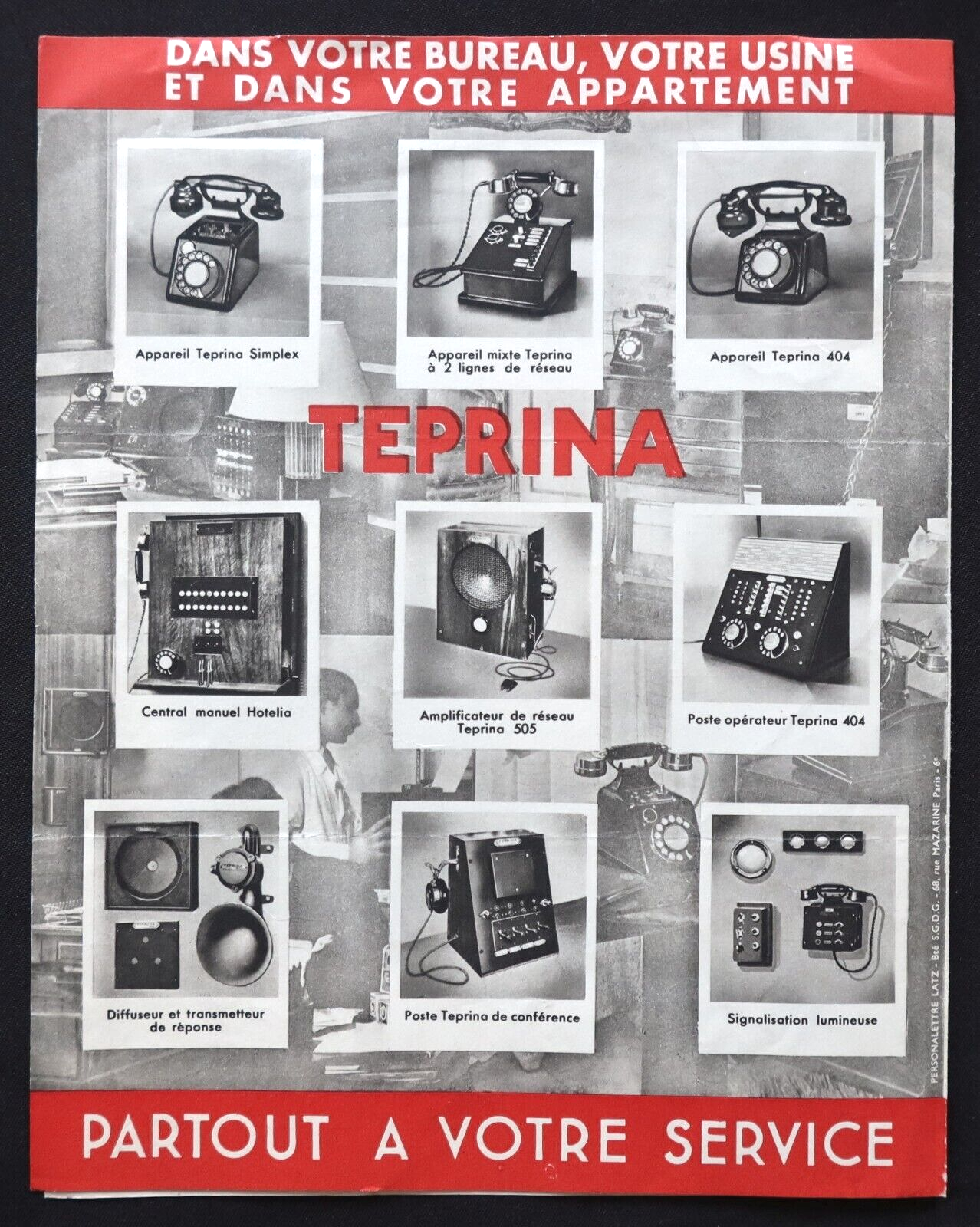 1950. Aujourd'hui, des modèles de TEPRINA sont conservés dans des collections privées et publiques. Les Archives Nationales du Monde du Travail conservent également des documents historiques liés à l'utilisation du TEPRINA dans le contexte des télécommunications et des transports en France. Ces téléphones sont non seulement des symboles de l'ingéniosité technologique de l'époque, mais aussi des témoins de l'évolution des communications au sein des entreprises. TEPRINA