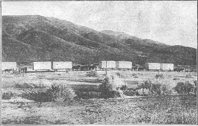 VOITURES TRANSPORTANT UES OUVRIERS I)E LA LIGNE NEW-YORK - SAN FRANCISCO