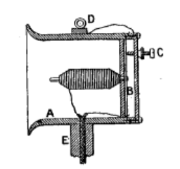 fond d'un tube en forme de trompette, qui vibre sous l'action de l'électro-aimant,
